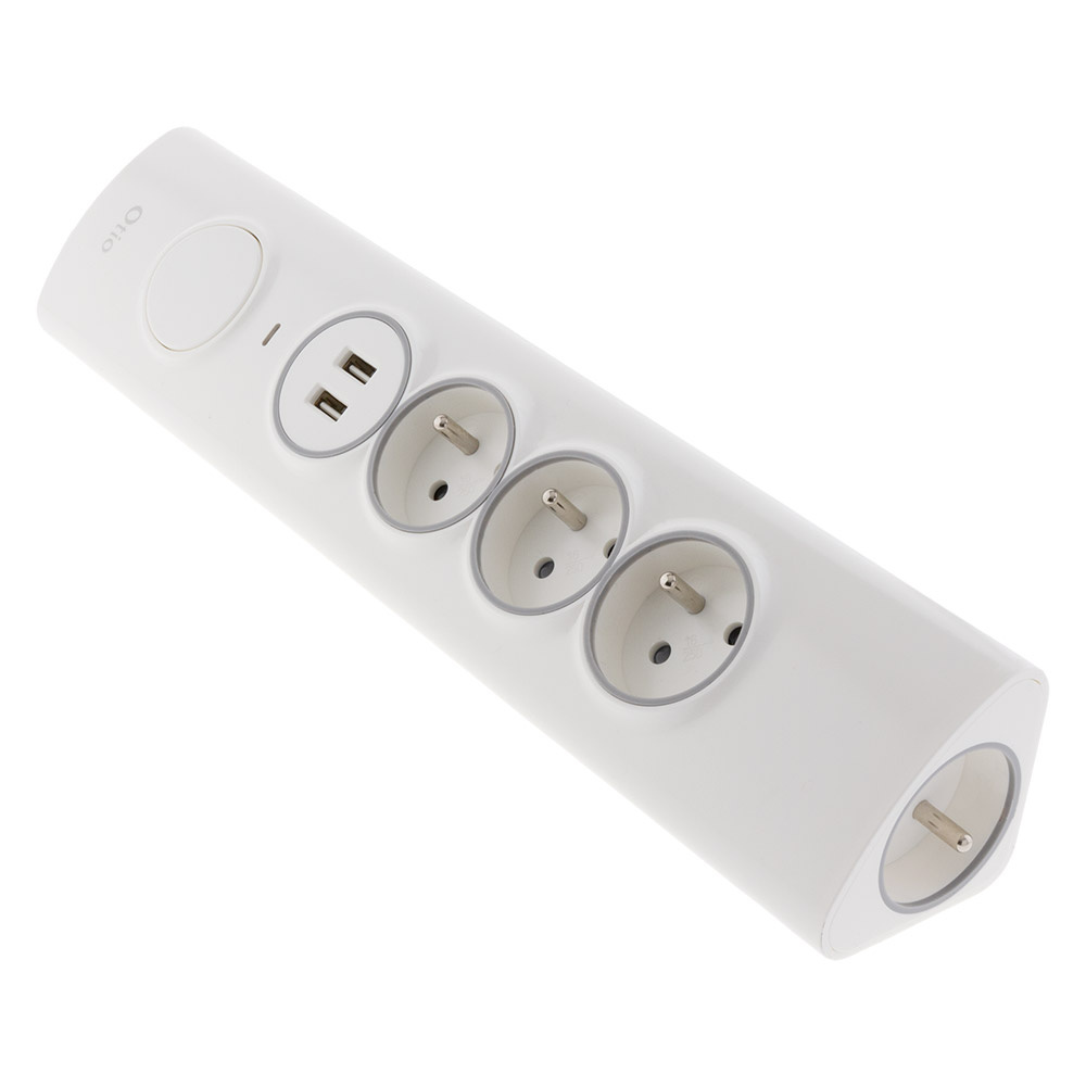 Ce bloc multiprises au design astucieux est idéal pour la cuisine, le bureau ou le salon. Il offre confort d'utilisation et protection pour tous les appareils électriques et multimédia contre les surtensions et la foudre. Pratique, il est muni d'une prise latérale pour brancher un chargeur sans encombrer les autres prises et de deux ports USB pour le chargement rapide de vos appareils nomades. Il est également doté d'un interrupteur qui vous permettra de réaliser des économies en éteignant tous les appareils d'un seul geste. Son installation est simple et s'effectue rapidement en fixant la multiprise grâce à sa platine arrière qui est démontable. Ce modèle est à câbler en HO5VV-F 3G1,5mm². Câble électrique non fourni.